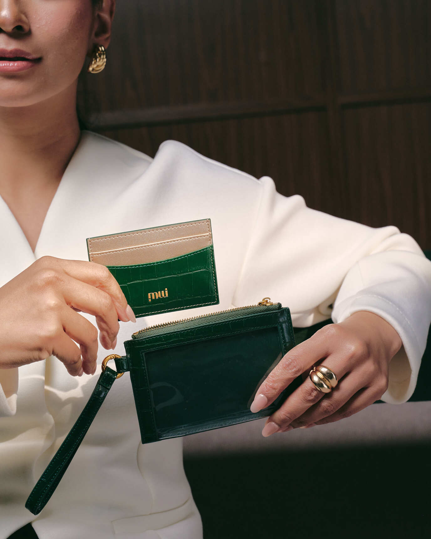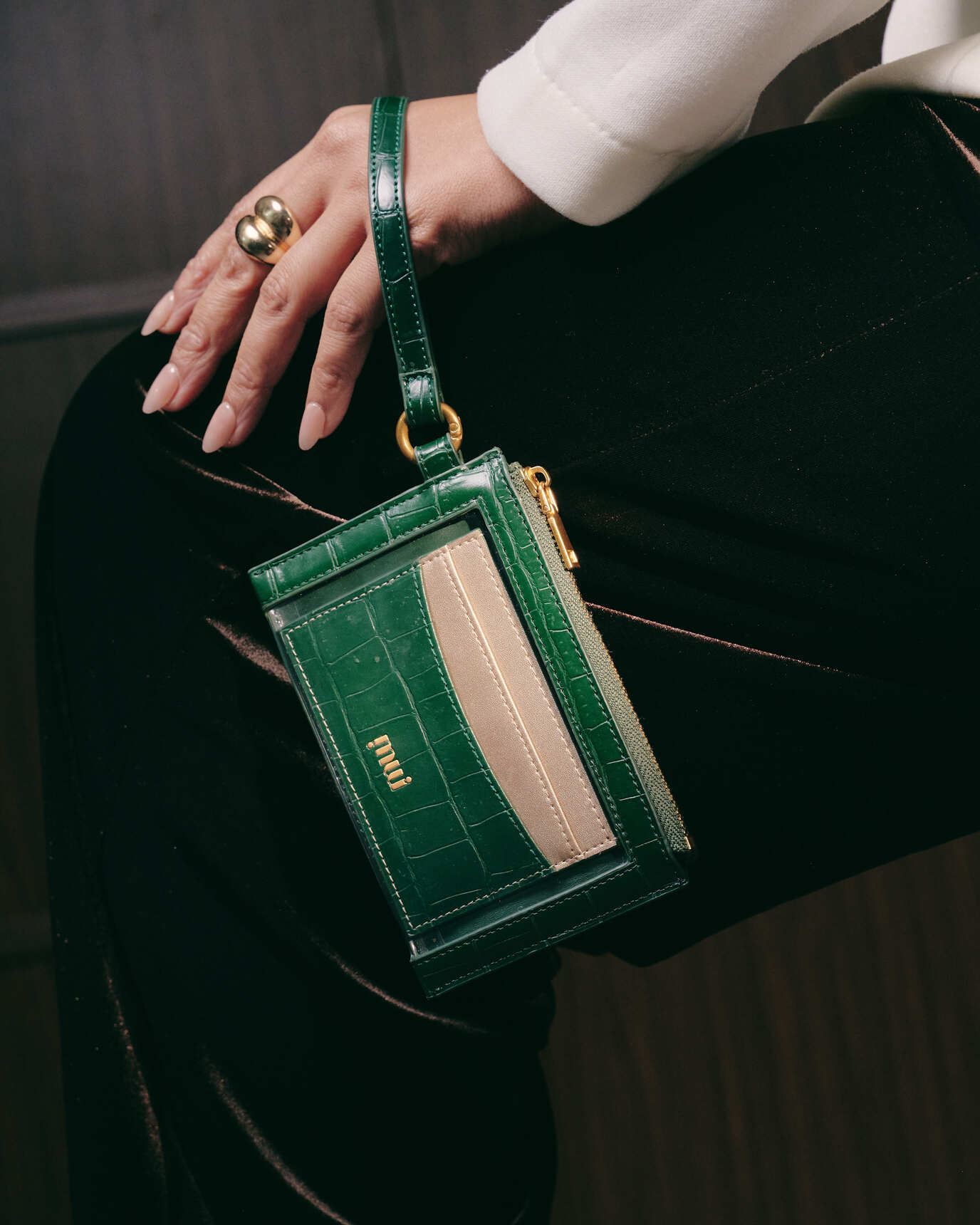 Effortless and thoughtfully designed, the LAURA Croc Wristlet & Cardholder in Pine Green are modern companions — easy to style, easy to carry, and made to move seamlessly with you throughout the day.