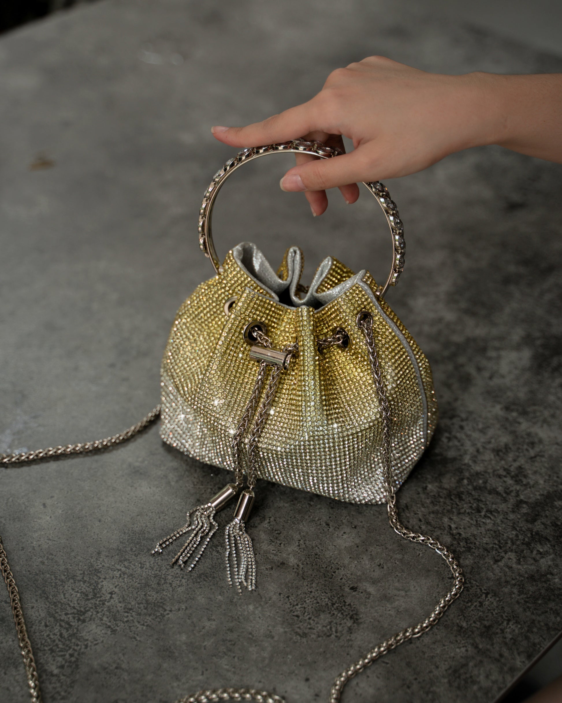 Meet the SEYA Stone in Citrine – she's this dazzling sister that's all about bling and glam! Crafted entirely from mesmerising rhinestones, she is not just a handbag, but also a flamboyant expression of your unique style.